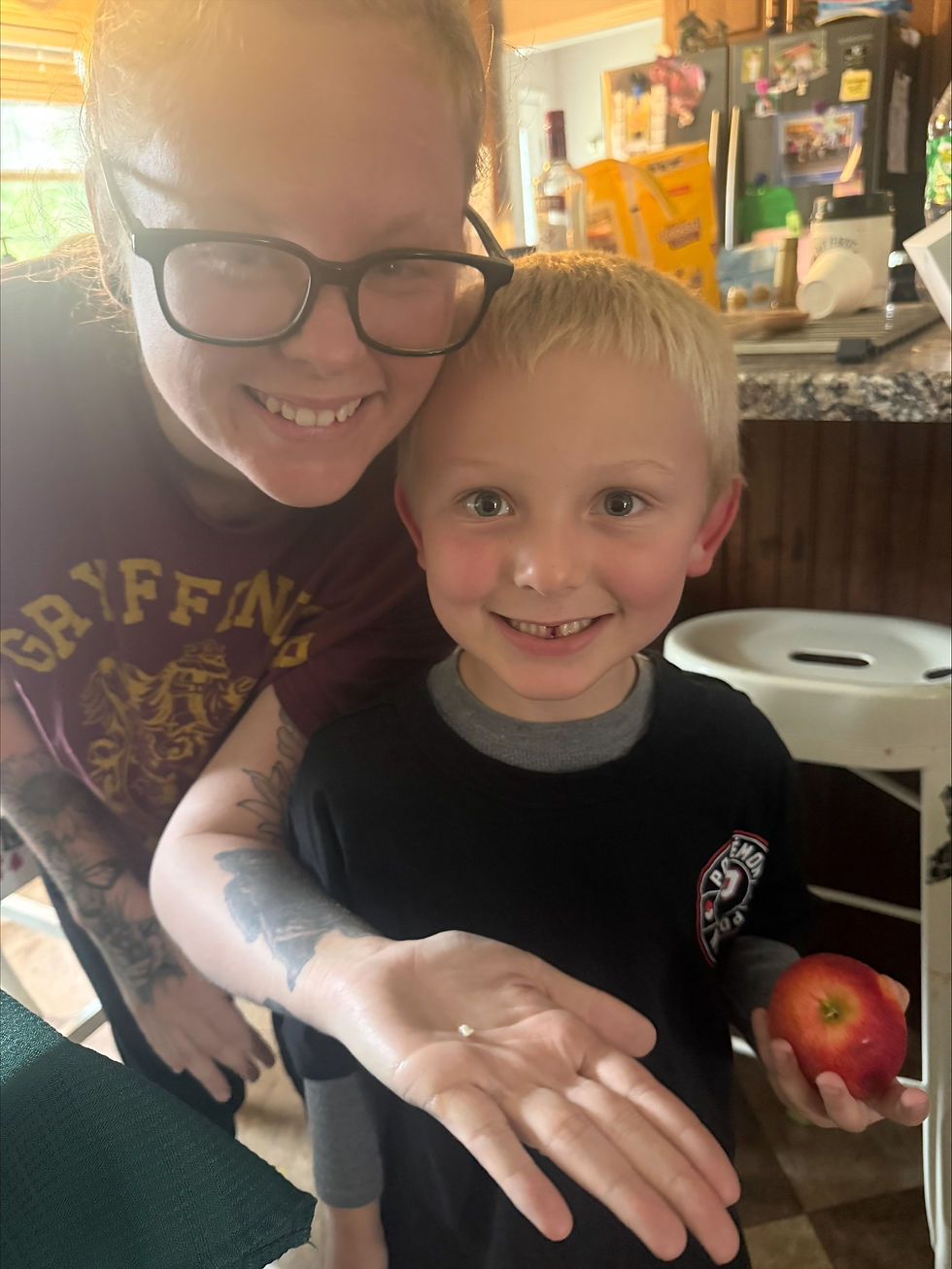 Sure enough, the tooth was gone. In its place was a crisp $5 bill. Cody just stood there for a moment, smiling — that proud, gap-toothed smile that makes every part of motherhood worth it. Then he turned around and wrapped his arms around me.